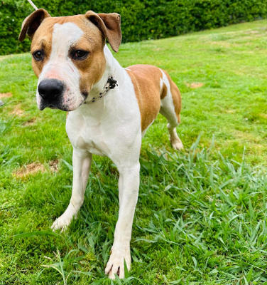 - KROSS, MESTIZO AMERICAN STAFFORDSHIRE, Macho, BLANCO Y MARRÓN