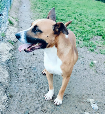 Este perro tan guapo es Kross, un mestizo de american stafford al que le estamos buscando una familia que le de la oportunidad de sentirse querido y cuidado. Es un perro enérgico y cariñoso.- Raza: